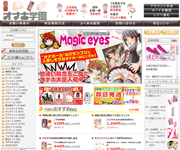 電動オナホールを多く販売しており、価格が日本のものより安価となっています。女体を模した大型のオナホールも数多く取り扱っています。